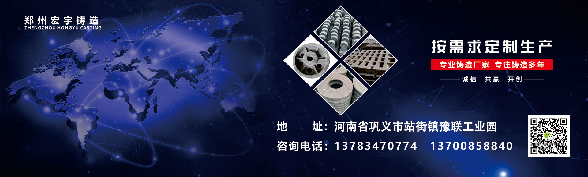 鄭州宏宇鑄造位于河南省鄭州鞏義市是鑄造件廠家,主要生產(chǎn)生鐵機械配件、耐磨襯板、耐磨錘頭、合金耐磨錘頭、制砂機錘頭、鑄鋼件、高鉻合金鑄件、球墨鑄鐵件、消失模工藝鑄件、砂型工藝鑄件等!來樣即可加工。 我們技術(shù)力量雄厚、設備齊全,目前有高級技師數(shù)名,技術(shù)人員數(shù)十名,能滿足客戶的不同需求,來圖來樣均可生產(chǎn),而且為了確保產(chǎn)品質(zhì)量進一步得到完善和提高, 確保供貨及時達到客戶的滿意,我們采用優(yōu)質(zhì)原材料及先進的制造工藝!